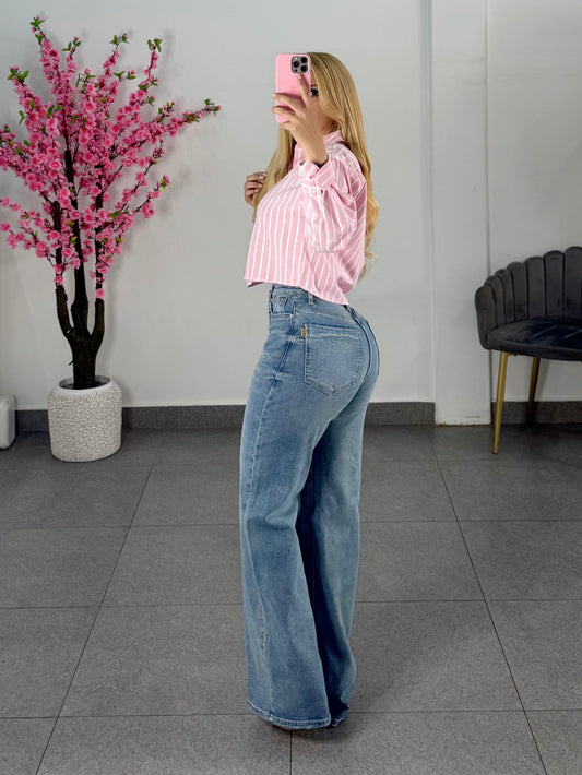 Set de pans rosa palo con botones en costado