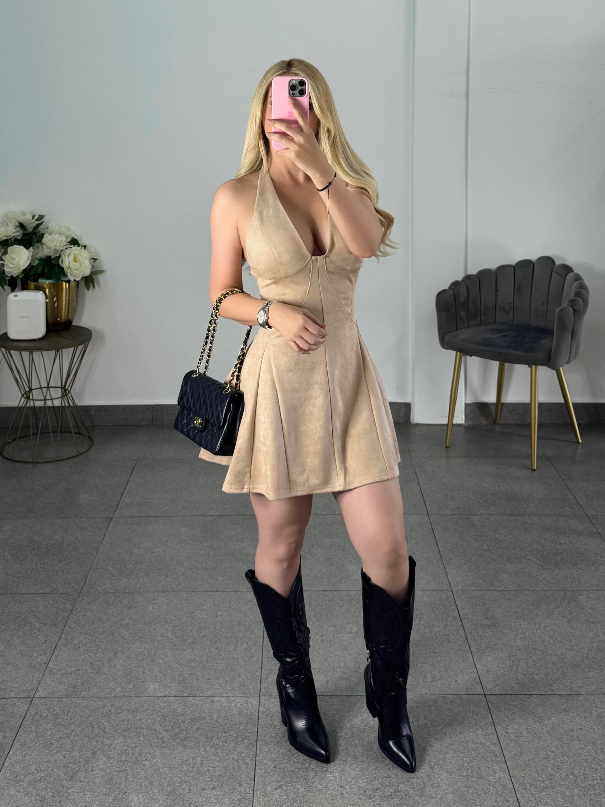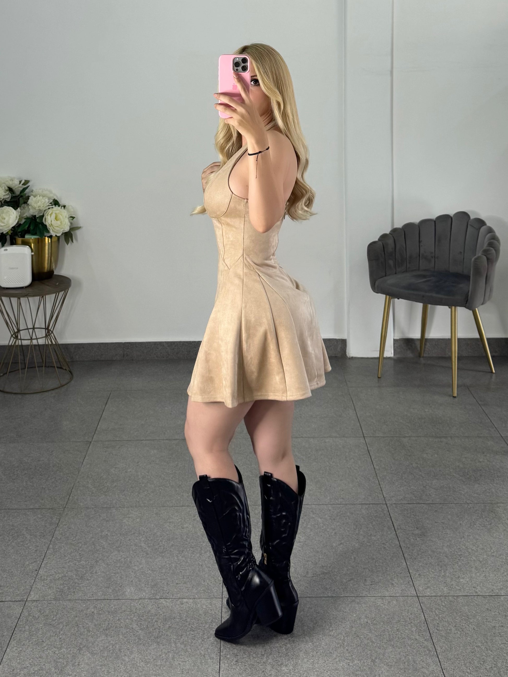 Vestido dress gamuza beige