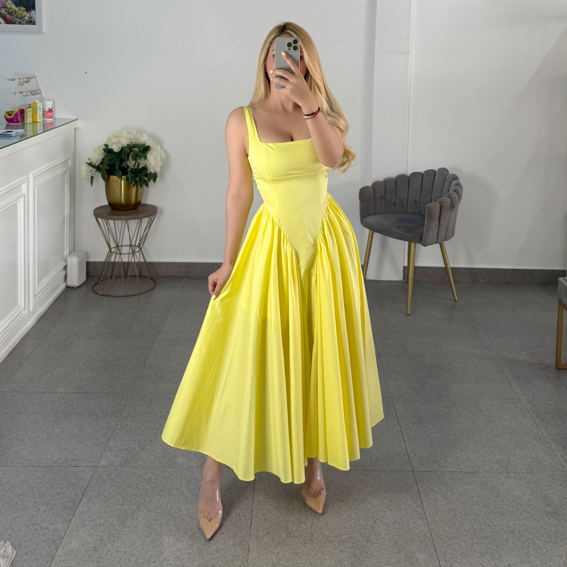 vestido midi amarillo