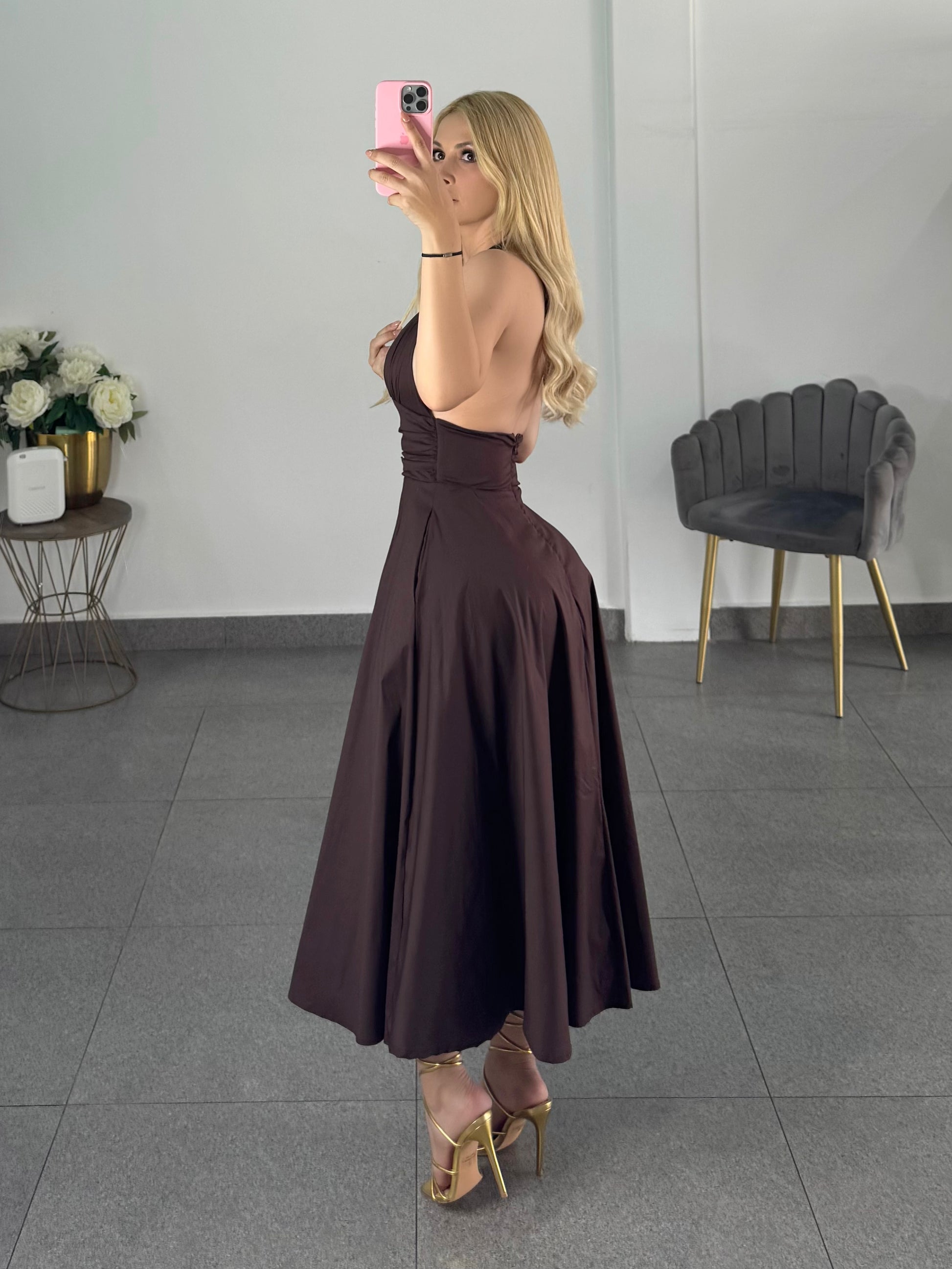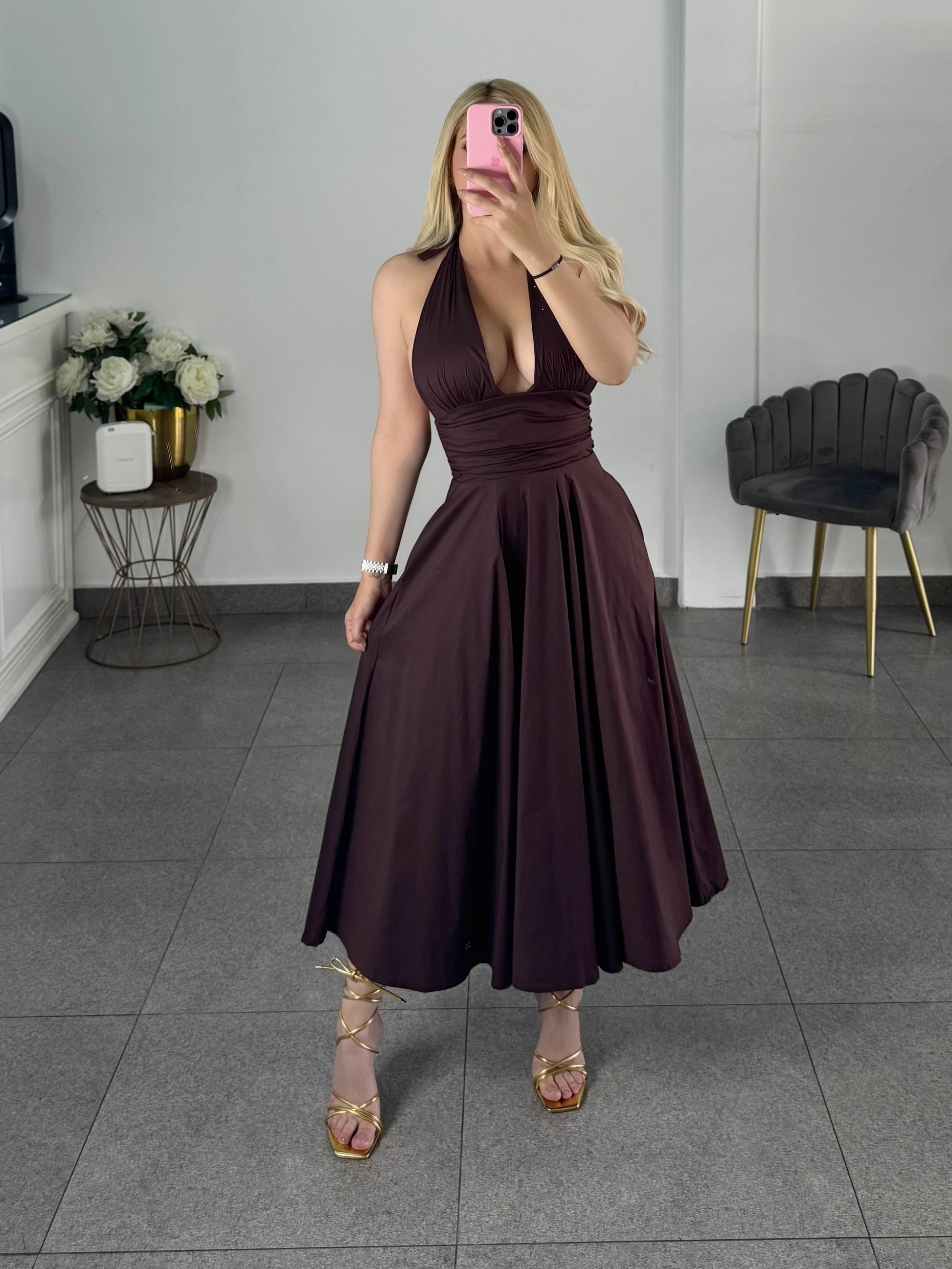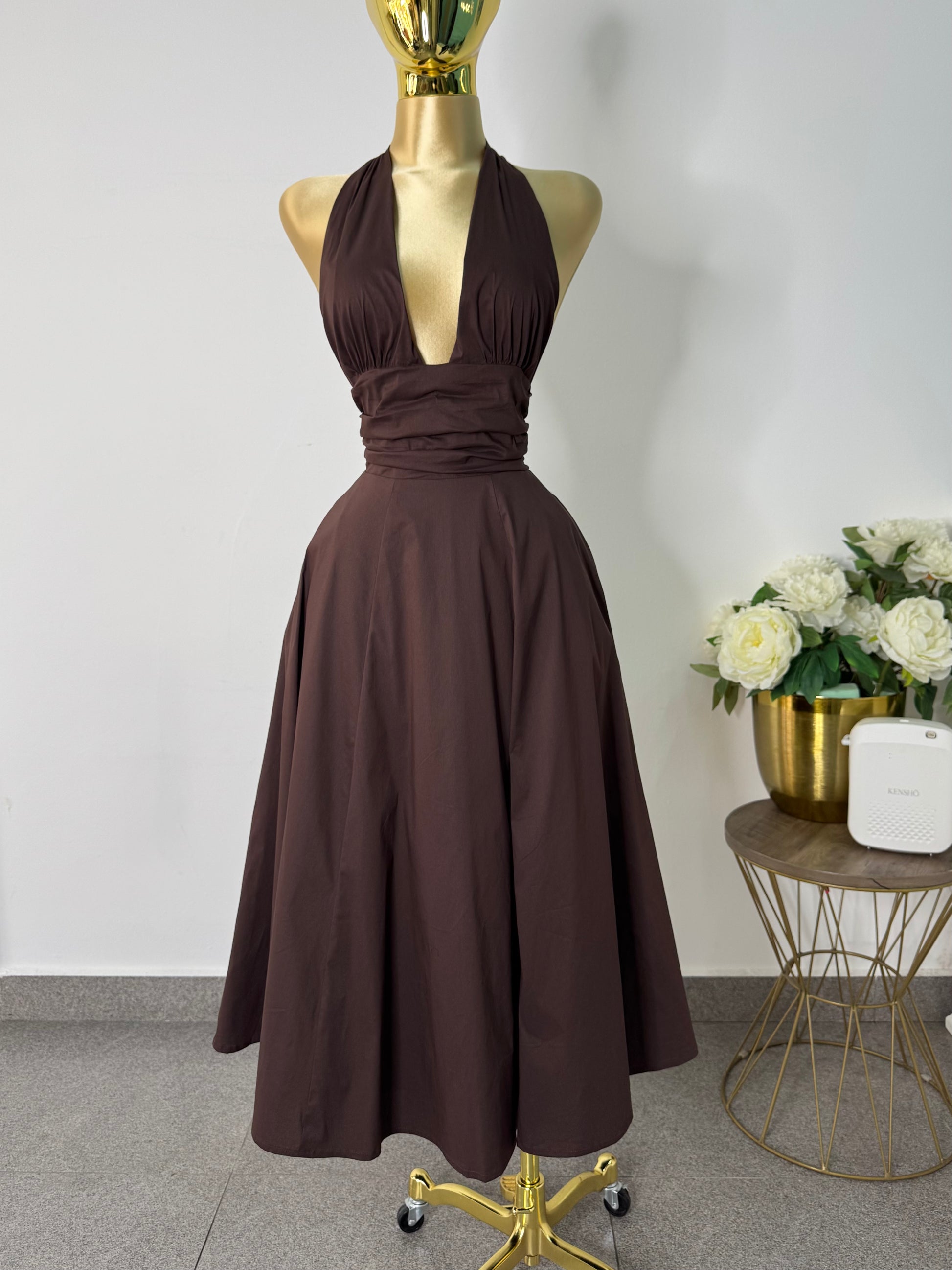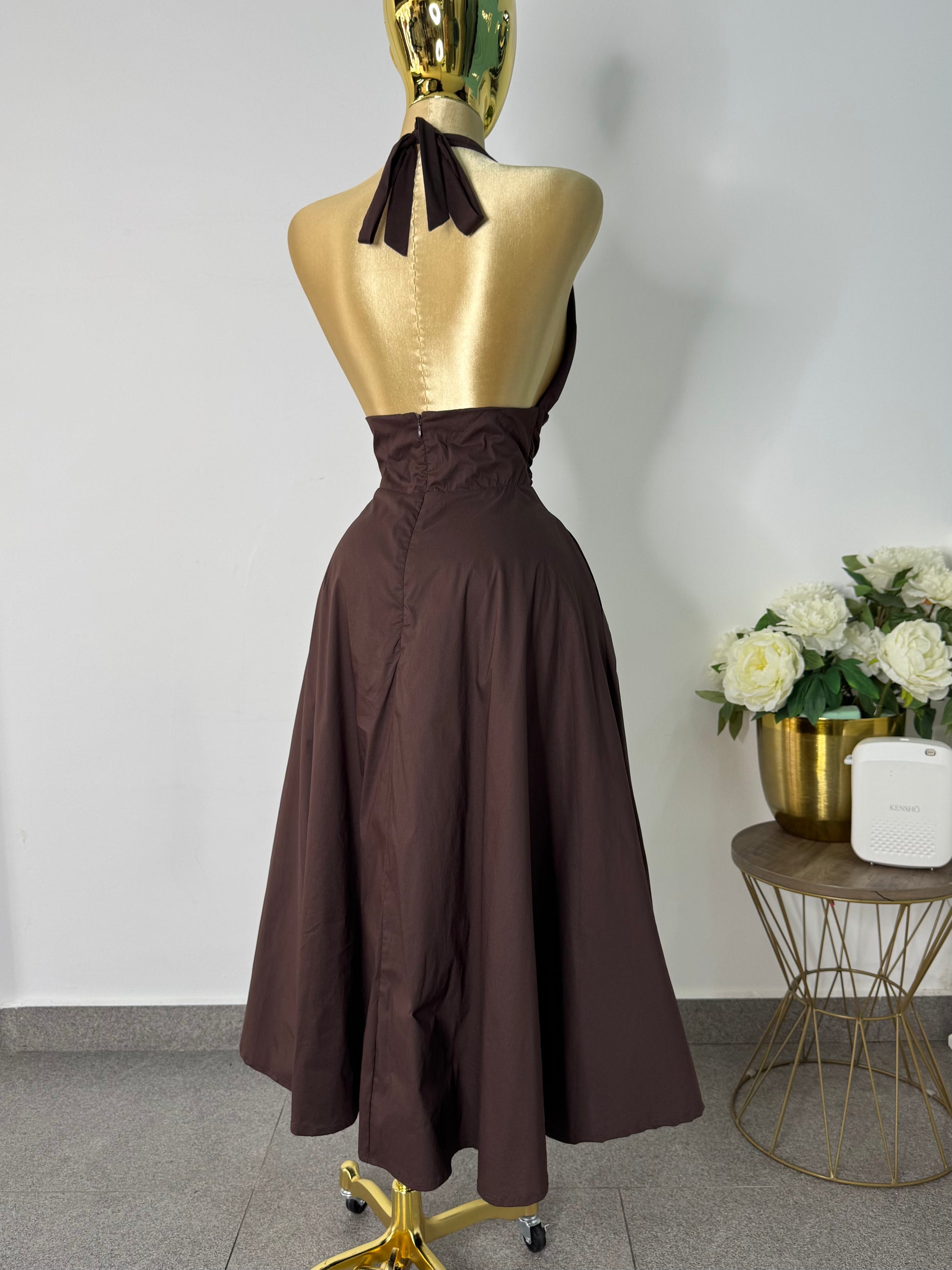 vestido midi tono cafe