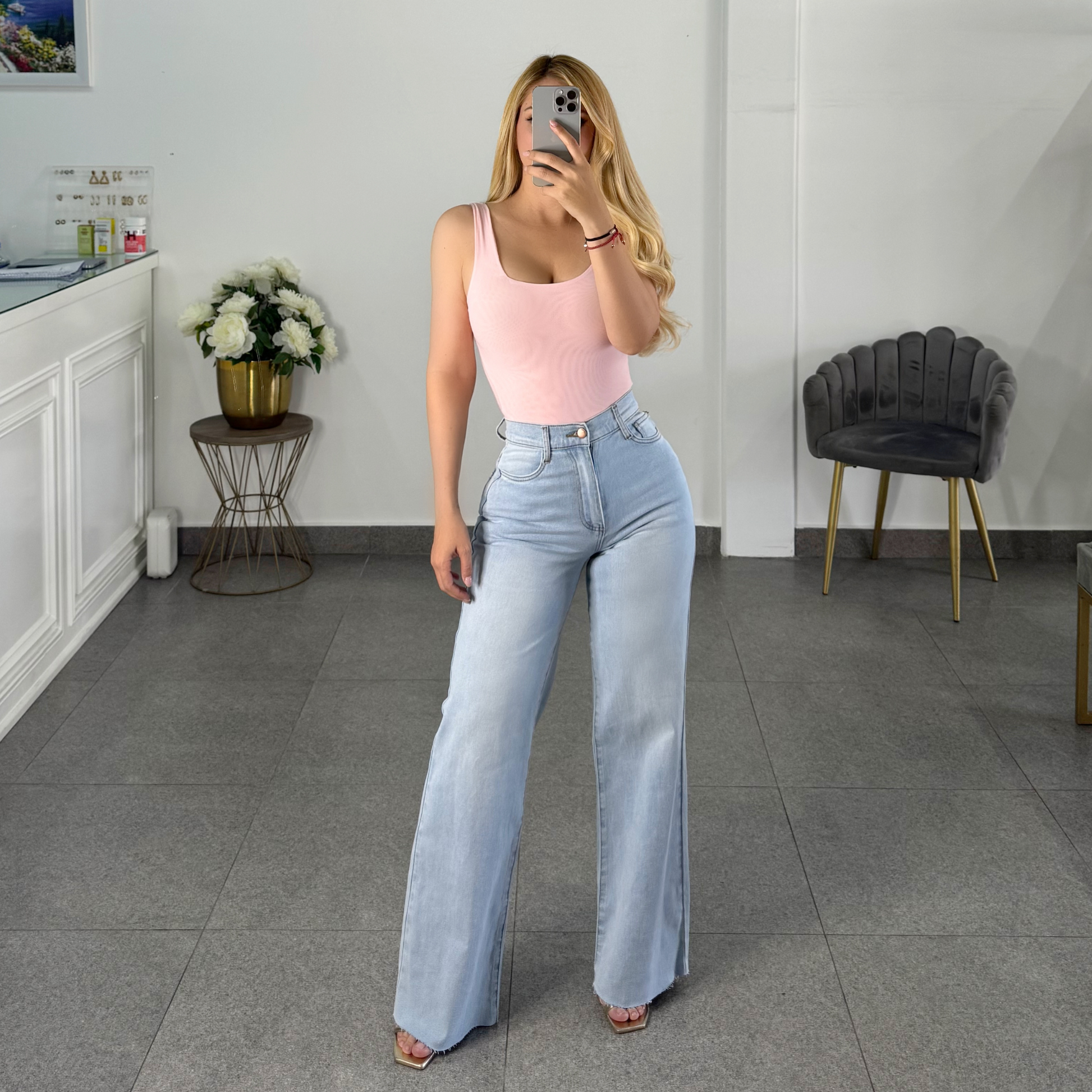 Vibrant Jeans mom corte recto claro