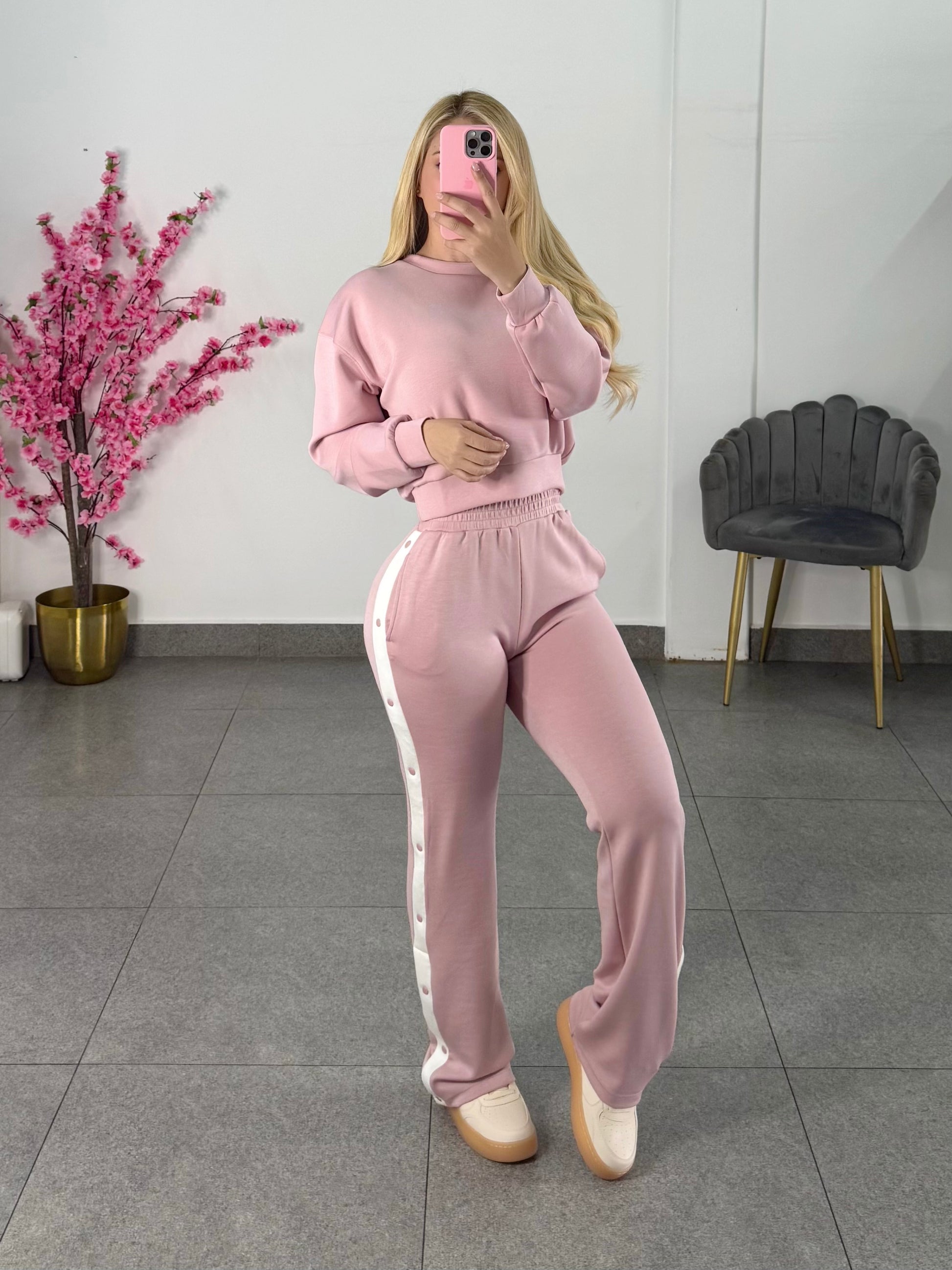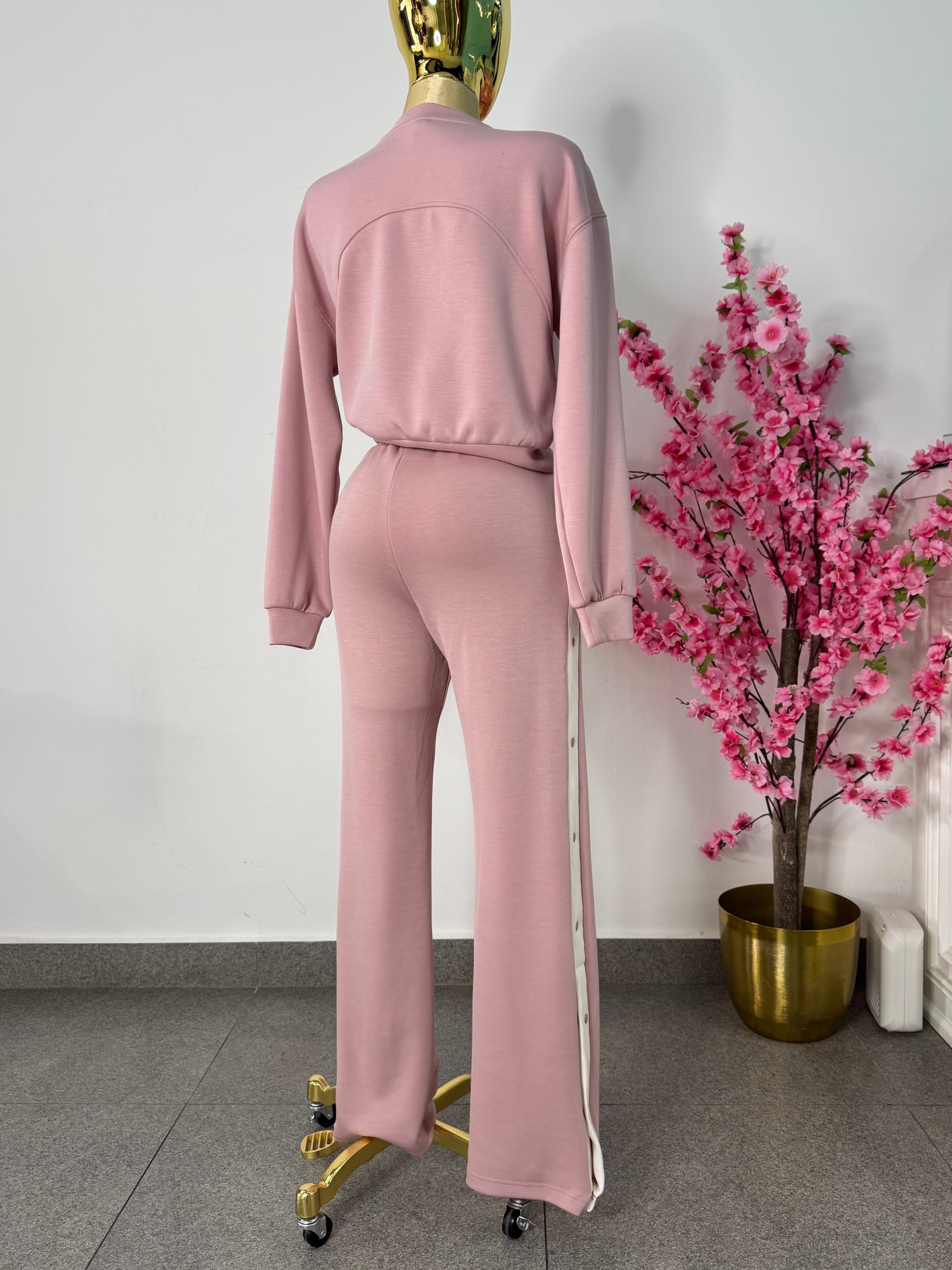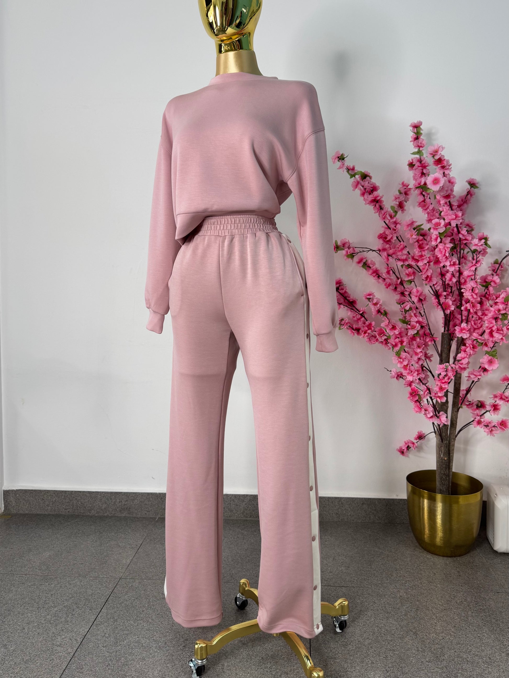 Set de pans rosa palo con botones en costado