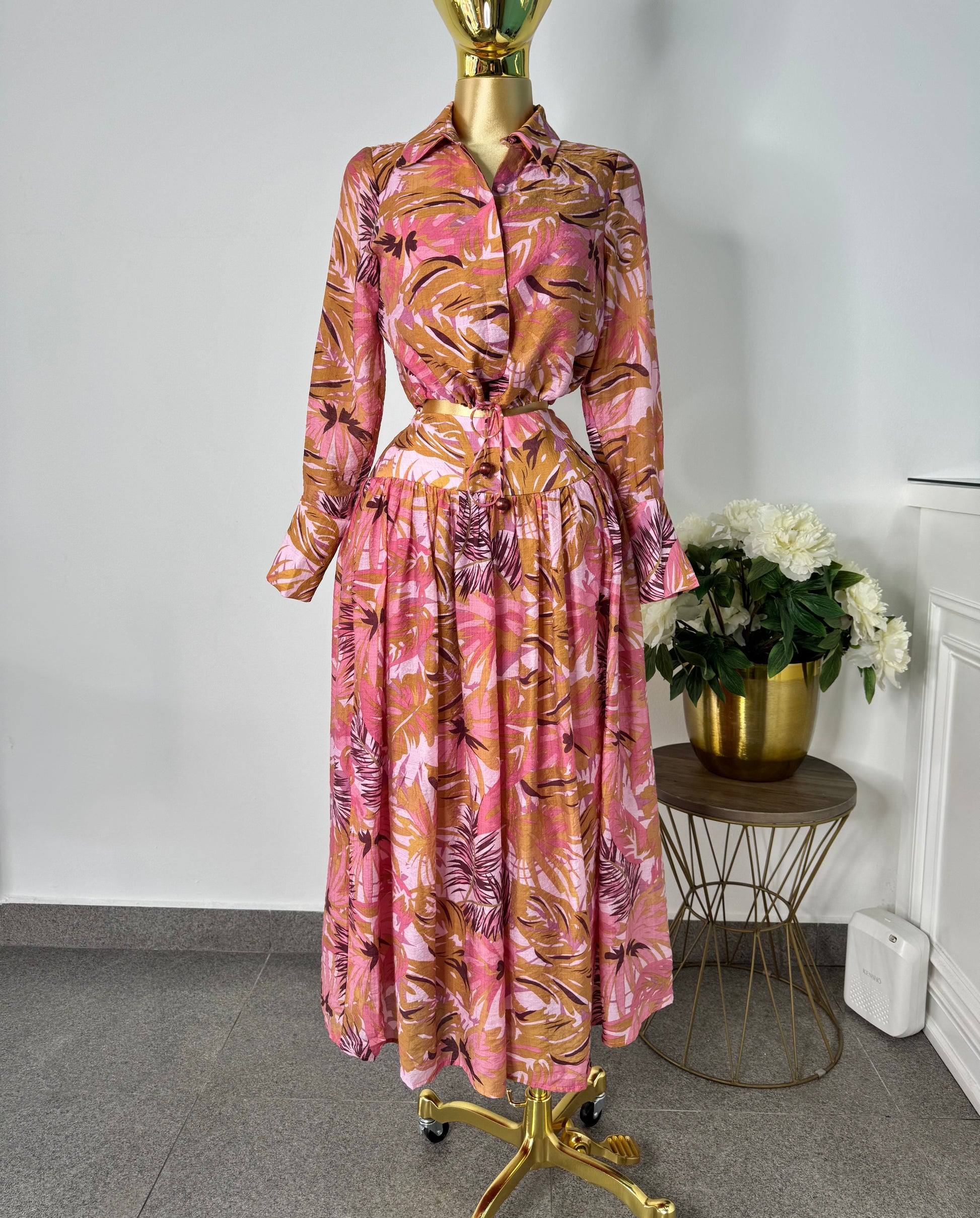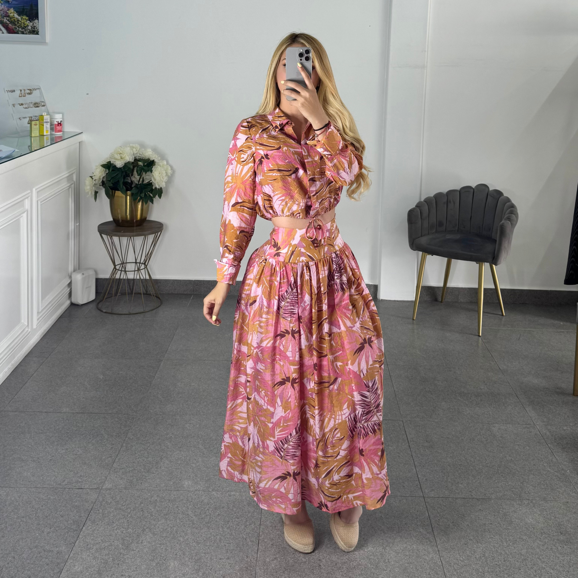 Set rosa cafe hojas