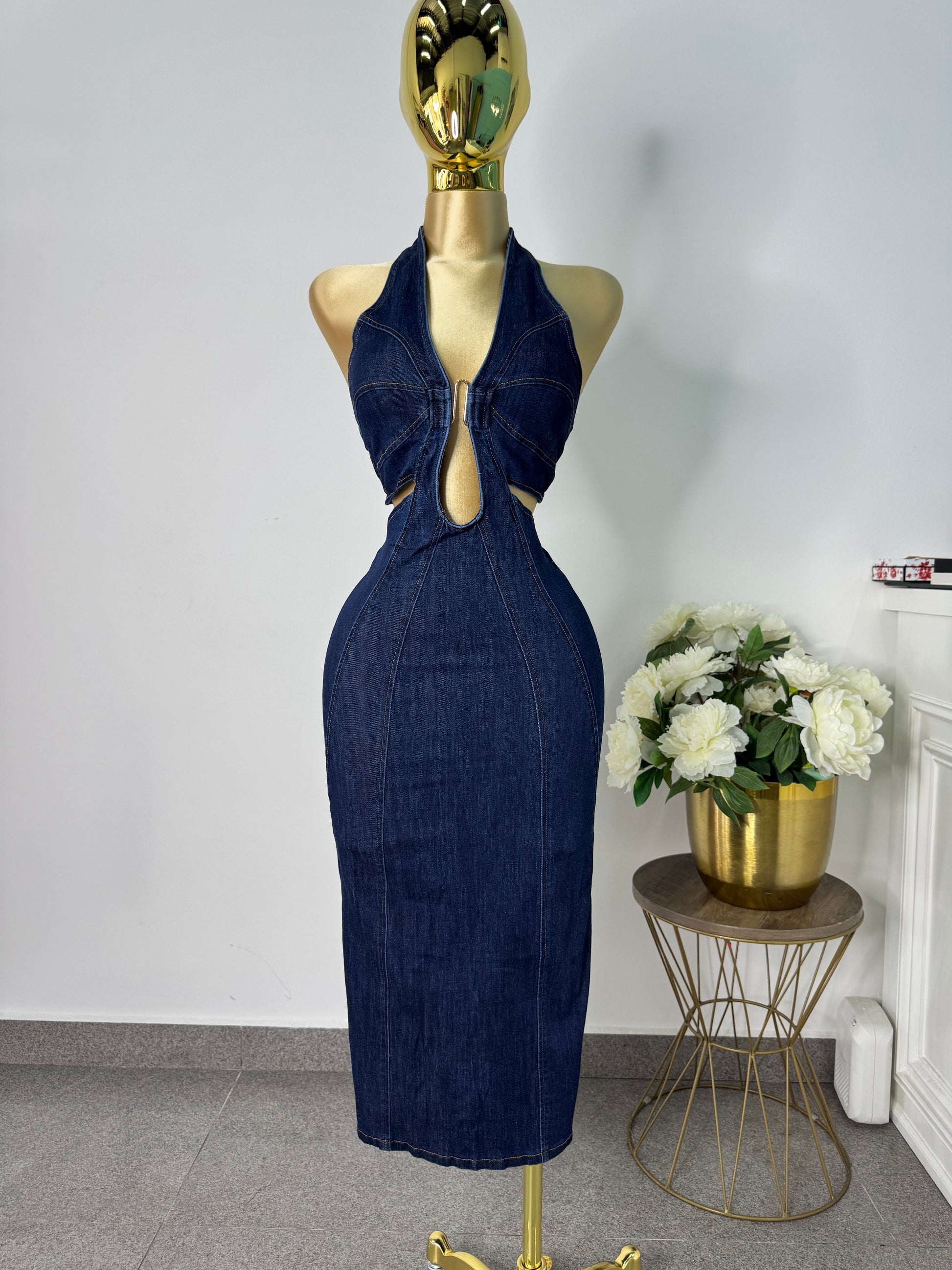 Vestido mezclilla oscuro cuello halter
